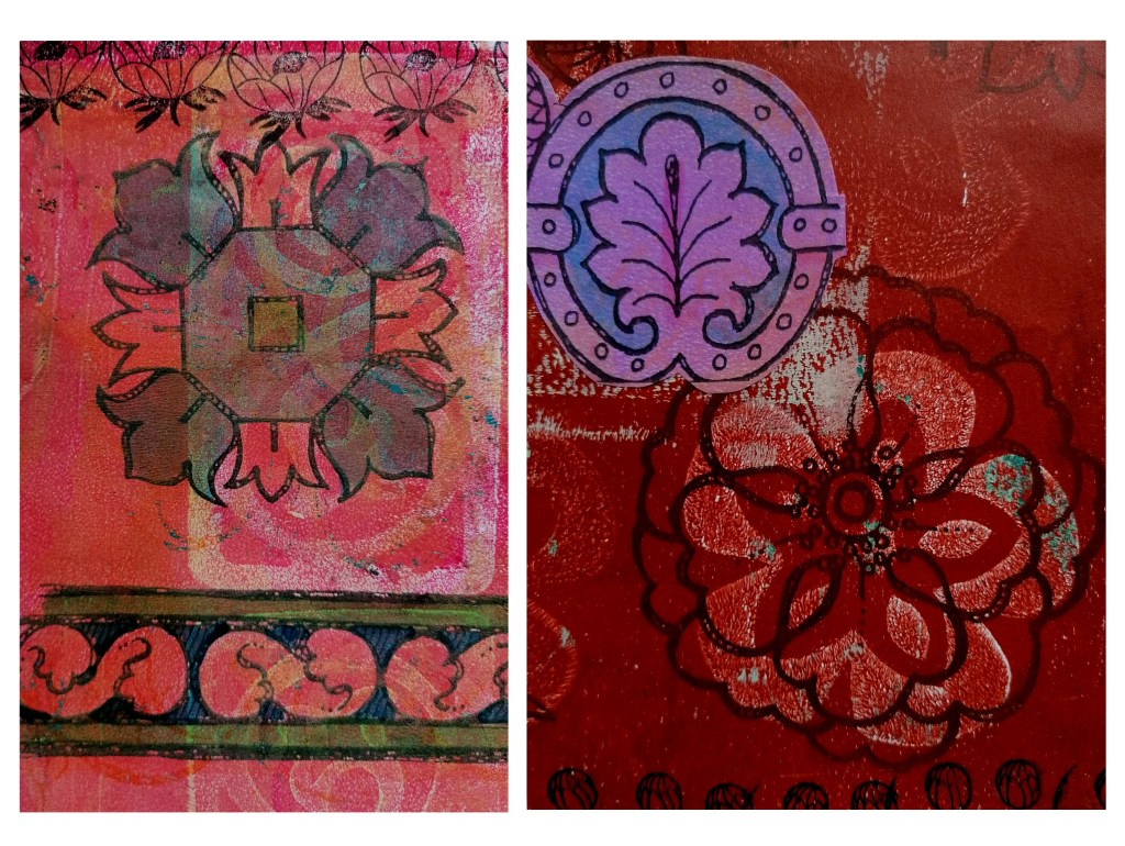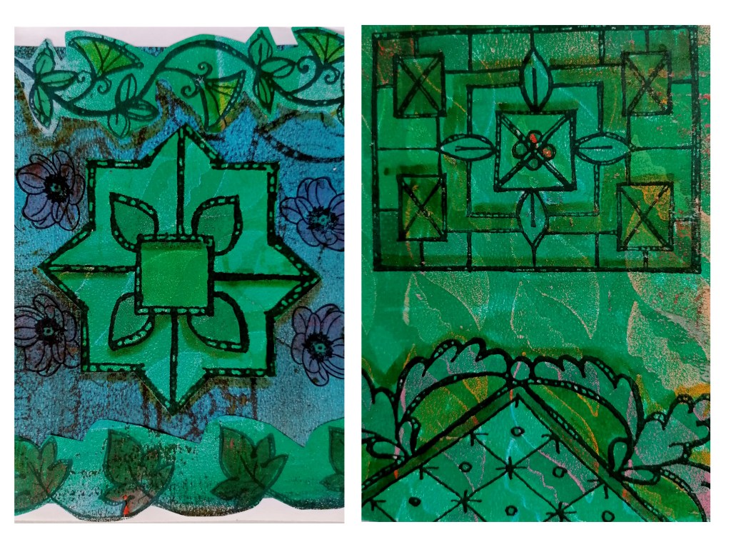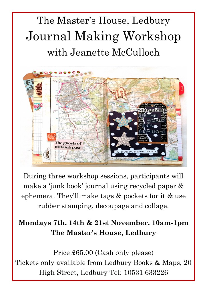 Hellens Manor, ran a two-day Textile Bazaar (Bailey Curtis organised this event) to which I was invited to run two workshops. Inspired by the rambling gardens of this old manor house, I invited the groups to make a collage concertina book, using tags, found words, images, stamped plant forms and old vintage papers.