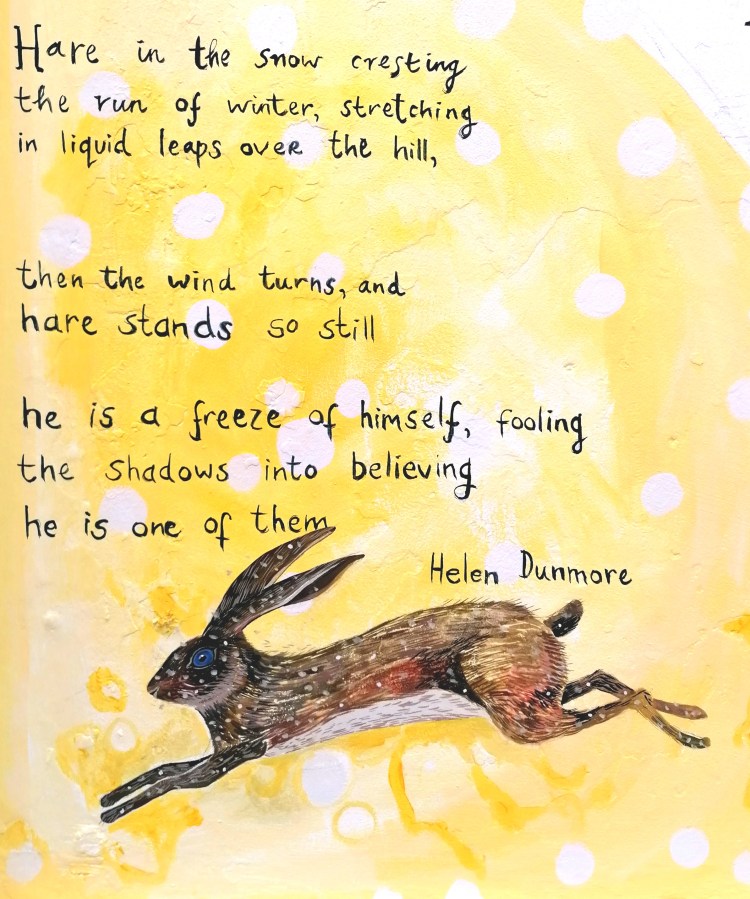 A second commission came from The Ledbury Poetry Festival to paint murals in their new premises, The Barratt-Browning Institute on Ledbury High Street. Here is a recent painting, inspired by the poet Sinead Morrisey. Check the Gallery page to have a look at the rest of the murals.