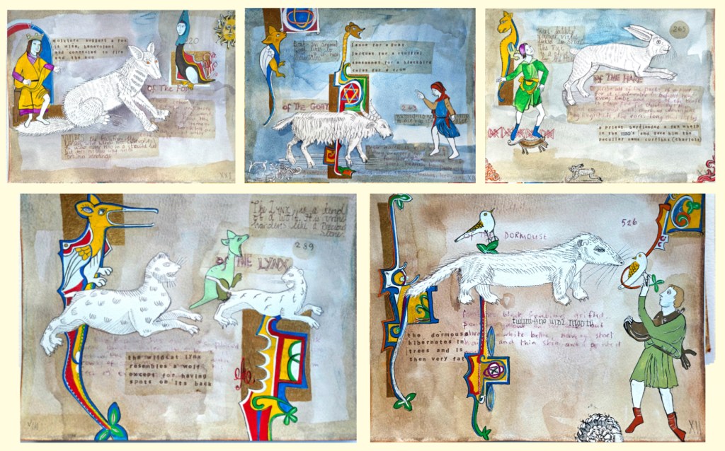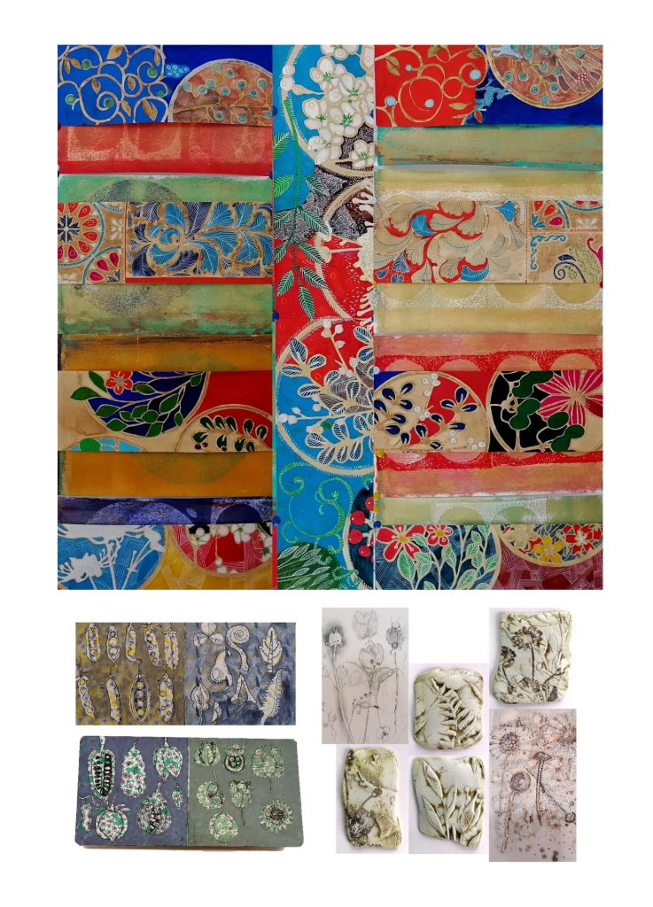 The year began by approaching Hereford Cathedral to make contact with Jennifer Dumbleton, Cathedral Librarian, to discuss exhibiting my work in relation to medieval ‘herbals and the library’s collection of illustrated books. I am not particularly knowledgeable about herbs or plants with medical properties, but I have always enjoyed medieval art and manuscripts, and old books from across the globe that depicted plants through glorious paintings and illustrations. The wonderful stylised depiction of plants often appeared simplified and flattened, then dissected to show plant parts, often highly stylised including insects, animals, the cosmos, and people busily occupied in their daily lives.