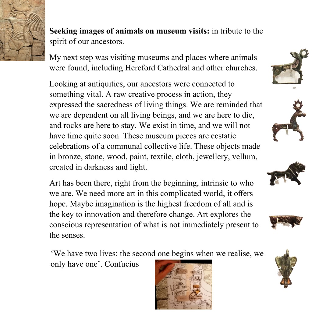 Working with Graham Hartill, Black Mountains poet and longtime friend, we began pulling together work previously made inspired by Kilpeck Church, in Herefordshire surrounded by countryside, a staggeringly unique church showing off its Romanesque sculptures, including 56 corbels and intricately carved doorway.